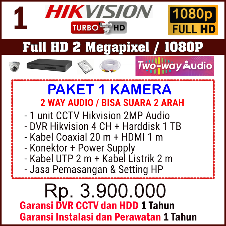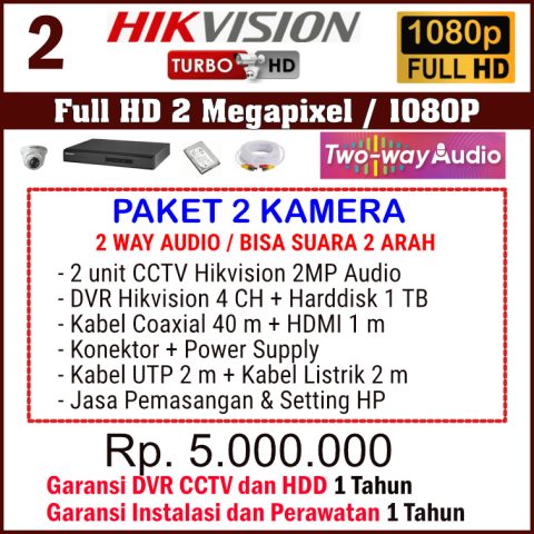 Paket CCTV Hikvision 2Mp Audio Paket CCTV Hikvision 2Mp Audio Paket CCTV ini memiliki fitur bisa merekam suara / audio.