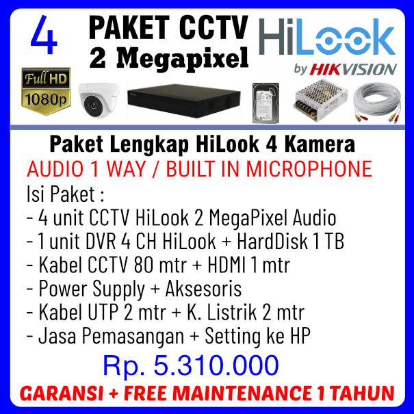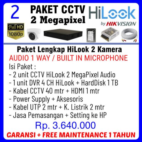 Paket CCTV HiLook 2Mp Audio Paket CCTV HiLook 2Mp Audio Fitur utama paket ini adalah bisa merekam suara / audio.